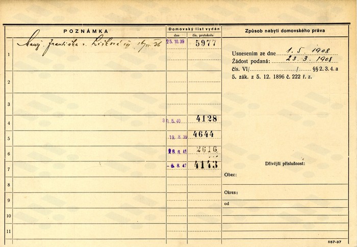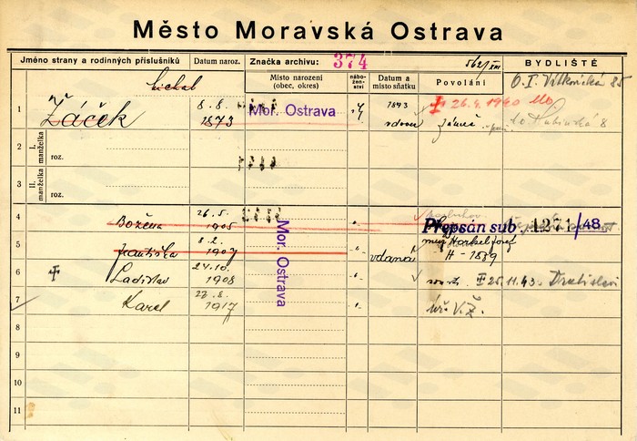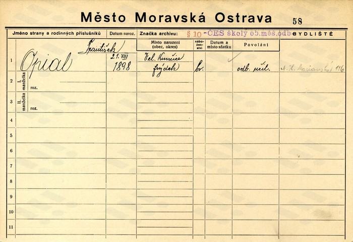 | František Opial, domovská karta, rub.... | František Opial, domovská karta.... | Ladislav Žáček, domovská karta... |