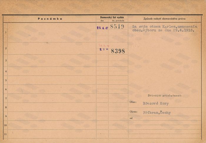 | František Opial, domovská karta, rub.... | František Opial, domovská karta.... | Ladislav Žáček, domovská karta... |