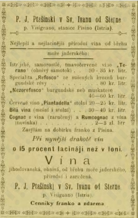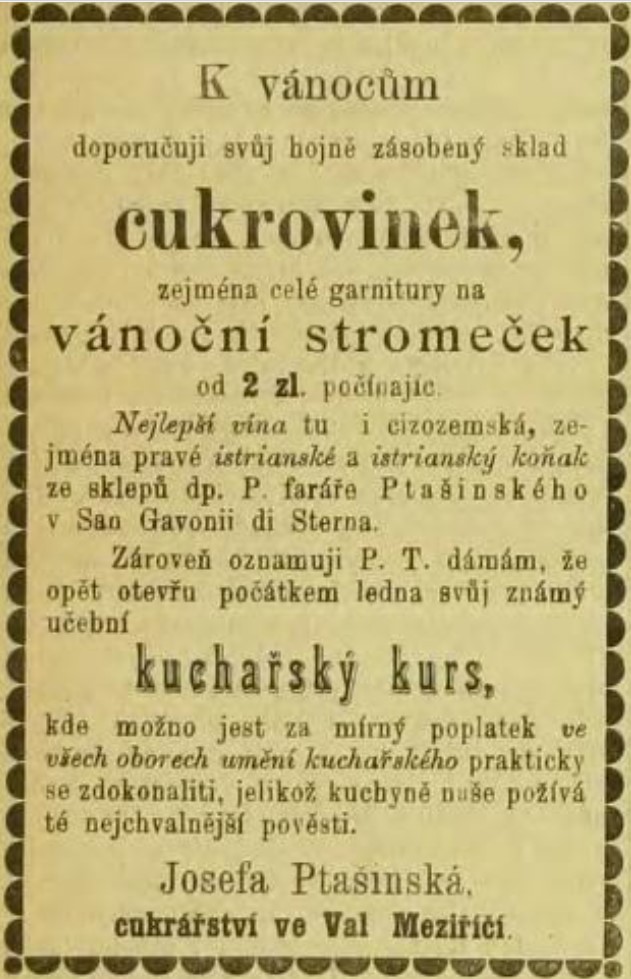 Firemní inzerce Marie Hrušové-Pyrochové v dobovém tisku. Zdroj: Stráž nad Bečvou, 1925